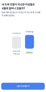 비슷한 연령대나 성별의 다른 사람들과 본인의 소비 수준을비교해 볼 수 있도록 구성된 안내형 온보딩 요소입니다.