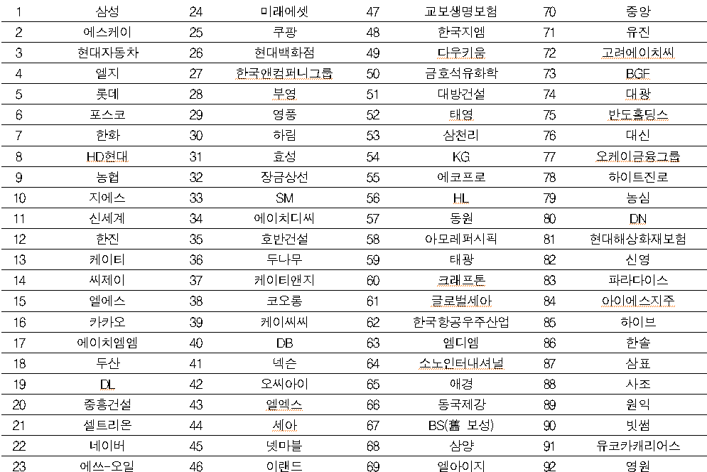15. 다음은 공정거래위원회에서 제시하고 있는 주요 기업집단입니다. 귀하께서 현재 근무 중인 기업은 아래 제시된 기업집단 중 어디에 소속되어 있습니까? ( 번호 입력 )*