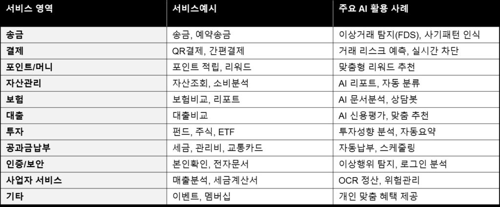 ■ 핀테크 플랫폼의 주요서비스 기반 AI 활용 사례 *