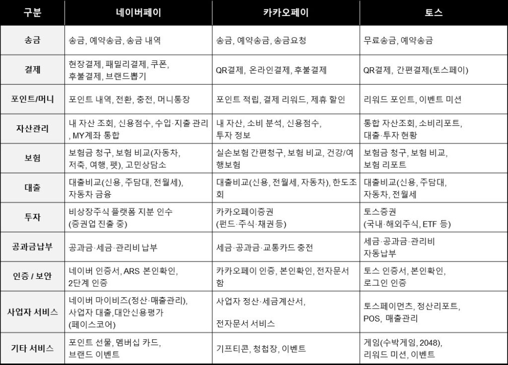 ■ 국내 주요 핀테크(Fin-tech) 플랫폼별 서비스 제공 현황(25.10.10기준)*