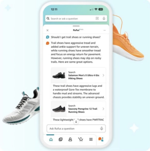 온라인 쇼핑 플랫폼의 예로 아마존(Amazon)의 ‘대화형 챗봇 루퍼스(Rufus)’, 네이버플러스스토어의 ‘포유(FOR YOU)’, 무신사의 ‘내 취향 맞춤 추천 아이템’, 에이블리 ‘OOO님을 위한 추천 상품’ 등이 있습니다.